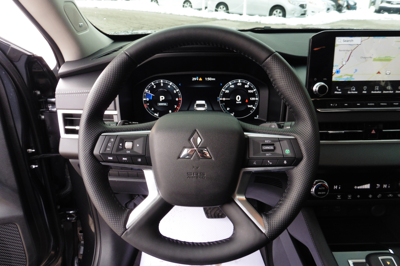 2024 Mitsubishi Outlander SE AWD With Navigation, Panoramic Roof, Third Row, And Under Factory Warranty! Back up camera, heated leather seats, 7-passenger, lane departure warning, cruise control, alloy wheels, power windows, power locks, power mirrors, keyless entry with push button start, power rear liftgate, A/C, power drivers seat, 2.4L 4 cylinder, automatic transmission, and much more!